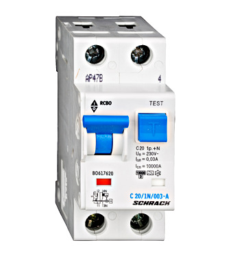 Vezetékvédő kapcsoló C 20A, 30mA, 1+N, A, 10kA