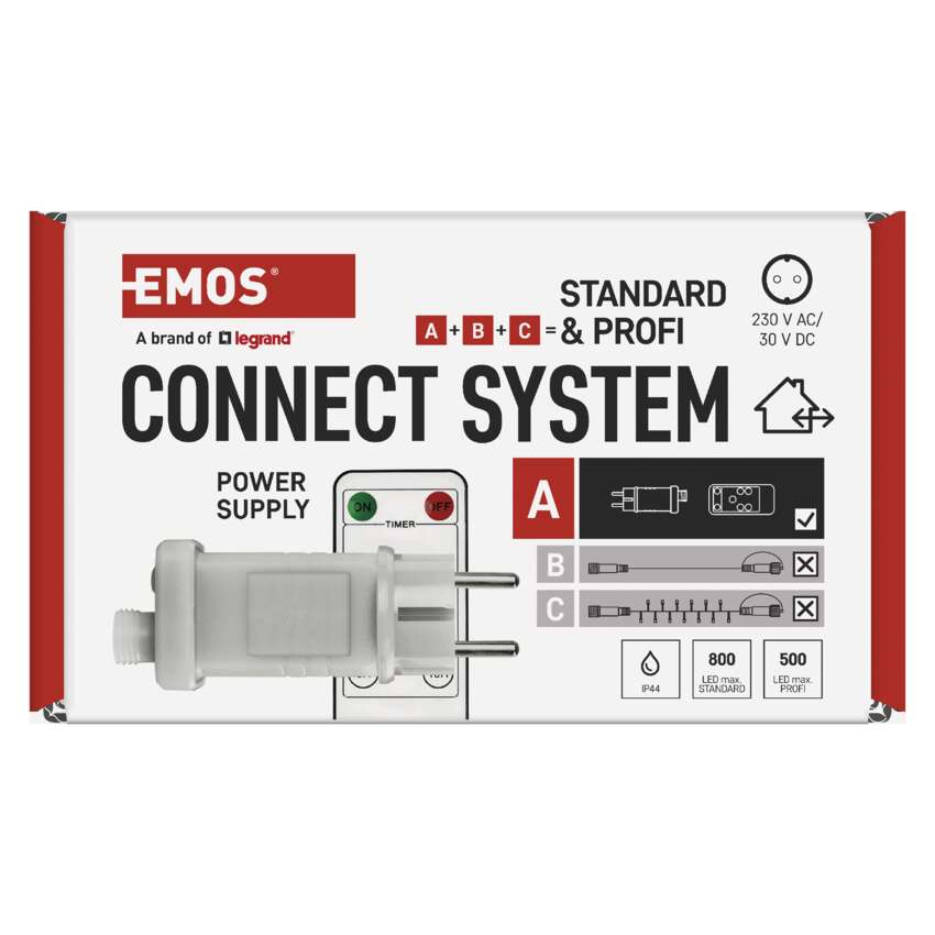 termék: adapter, sorozathoz: standard/profi, időzítő, távvezérlő: igen (CR2032, tartozék), használat: kültéri és beltéri, csatlakozások max. száma: standard 800 LED/profi 500 LED, tápellátás típusa: AC (hálózati) adapter, bemeneti feszültség: 230 V AC, kimeneti feszültség: 30 V DC, fogyasztás: 12 W, védettség: IP44, élettartam: 5 000 óra, anyag: műanyag, garancia-időszak: 2 év, értékesítési csomagolás: 1 db, doboz