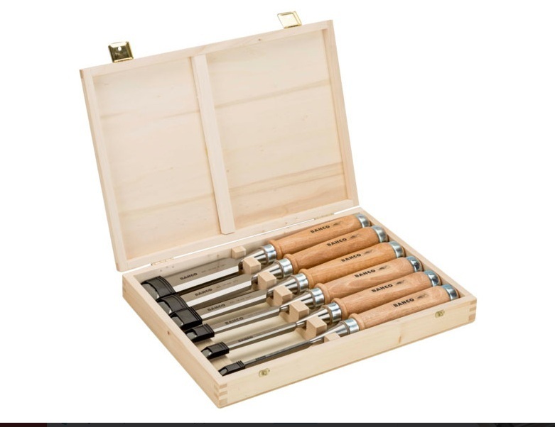 Termék: Favéső készlet (6 részes). Márka: Bahco. Cikkszám: 425-083. Tartalom: 6, 10, 12, 18, 25, 32 mm-es vésők. Csomagolás: Fadoboz. Anyag (nyél): Bükkfa.