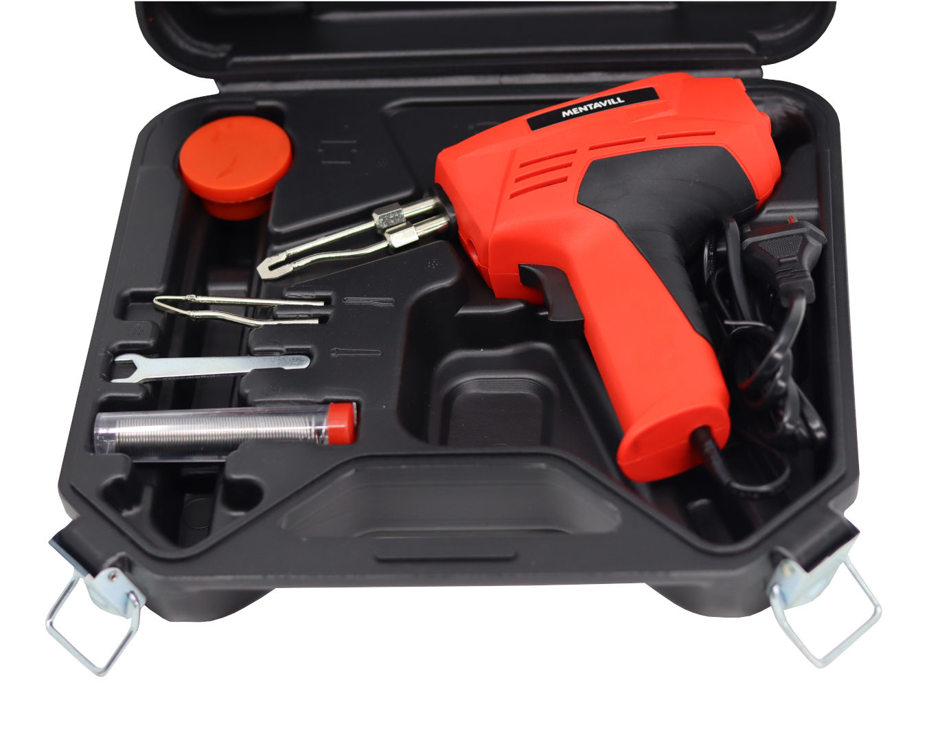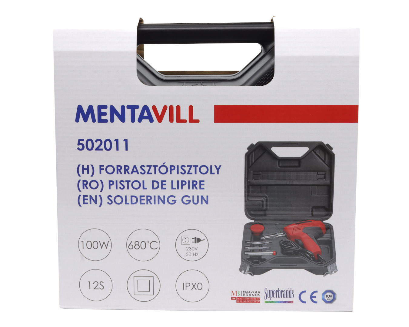 Ez a 100W teljesítményű forrasztópisztoly nagy teljesítményének köszönhetően ideális gyors és hatékony forrasztási munkákhoz, legyen szó elektronikai javításról, kábelezésről vagy barkács feladatokról. A készülék rövid idő alatt eléri a max. 680°C-os hőmérsékletet, így vastagabb vezetékek és nagyobb forrasztási pontok esetén is megbízhatóan használható. Az ergonomikus pisztolyforma kényelmes kezelést és pontos munkavégzést biztosít. A szett praktikus műanyag kofferben érkezik, amely megkönnyíti a tárolást és a szállítást, miközben minden tartozék rendezetten elfér benne. A készlet tartalma: 100W-os forrasztópisztoly Műanyag hordozókoffer Forrasztóón Folyósítószer Tartalék forrasztóhegy Csavarhúzó