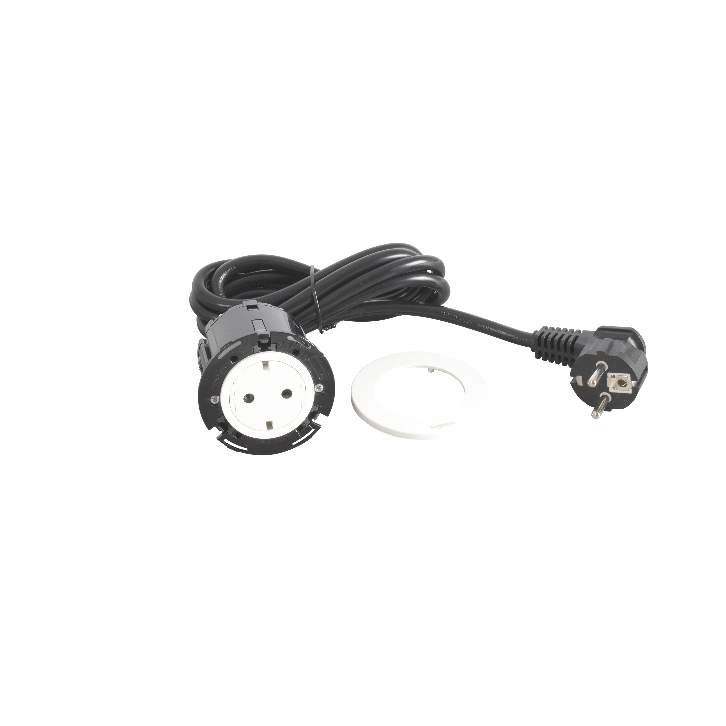 Incara Disq 60 - bútorba süllyeszthető 2P+F csatlakozóaljzat, 2m kábellel, fehér