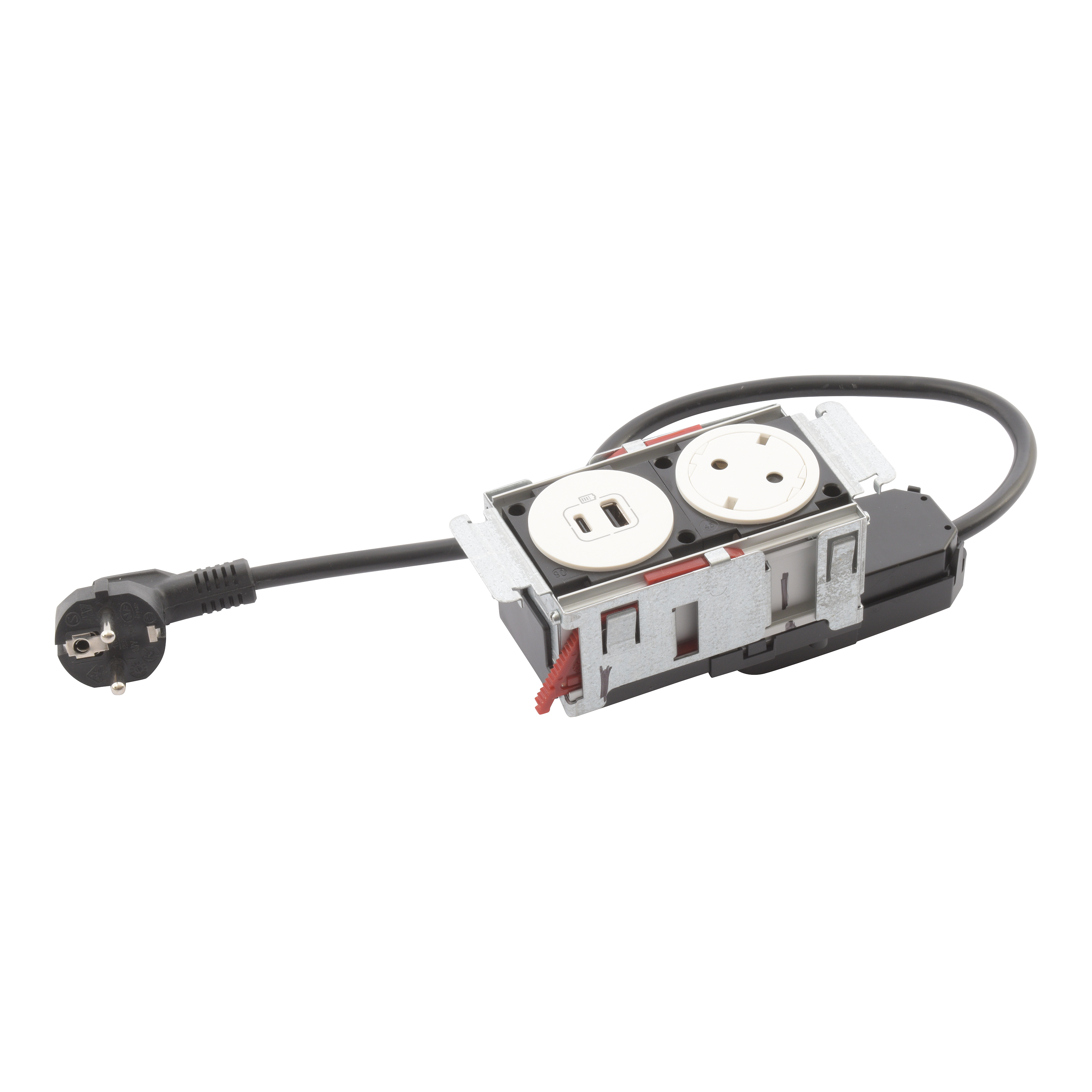 Incara Disq In 2 - bútorba süllyeszthető 1x2P+F + 1xUSB A+C aljzat, 2m kábellel, fehér