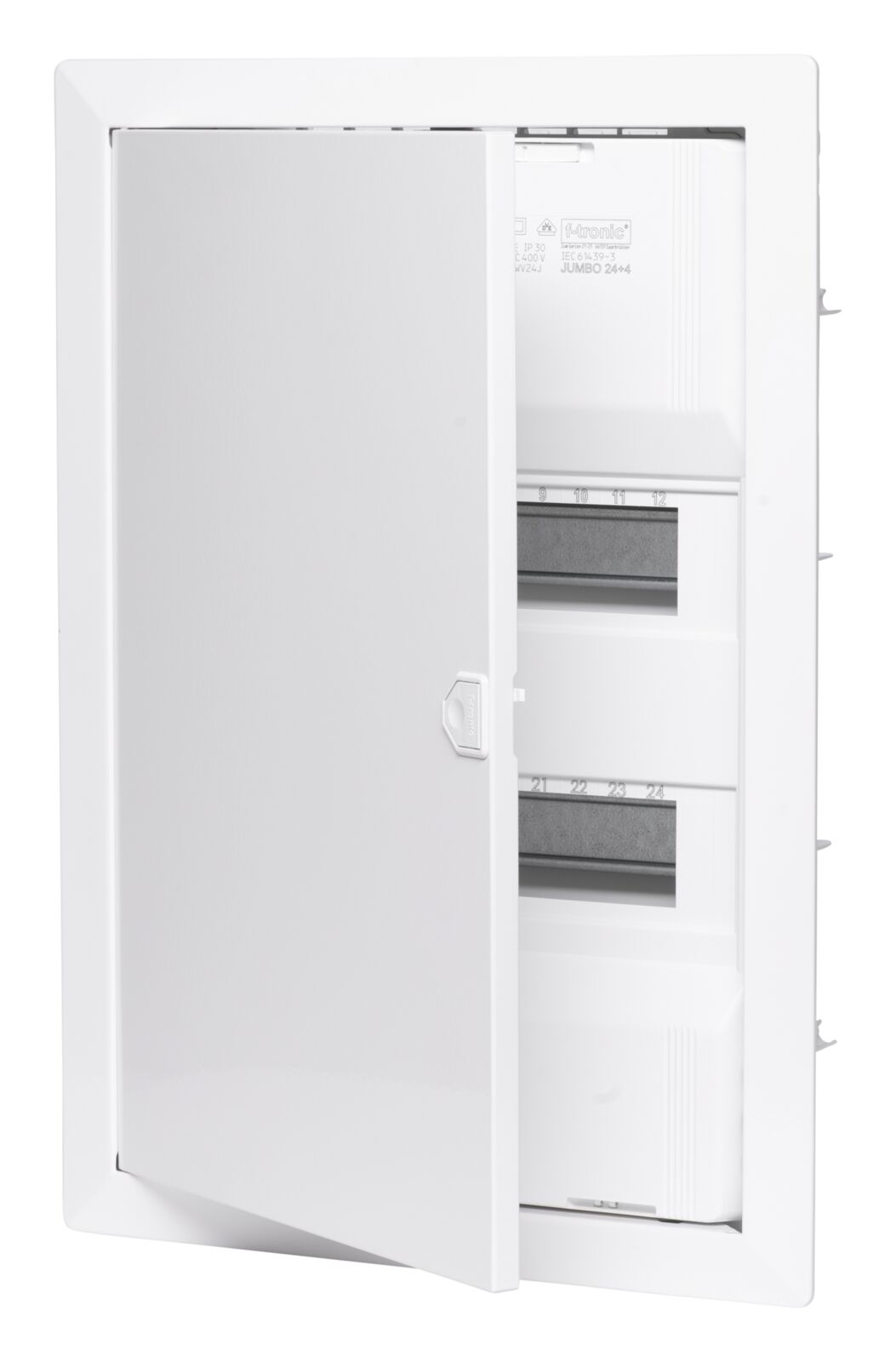 Tartozék: 1× ajtó kerettel (T+R JUMBO24+4), 1× fázis kiegészítő kapocs (FIK), 1× PE-N csatlakozó kapocs (SKN17PE)