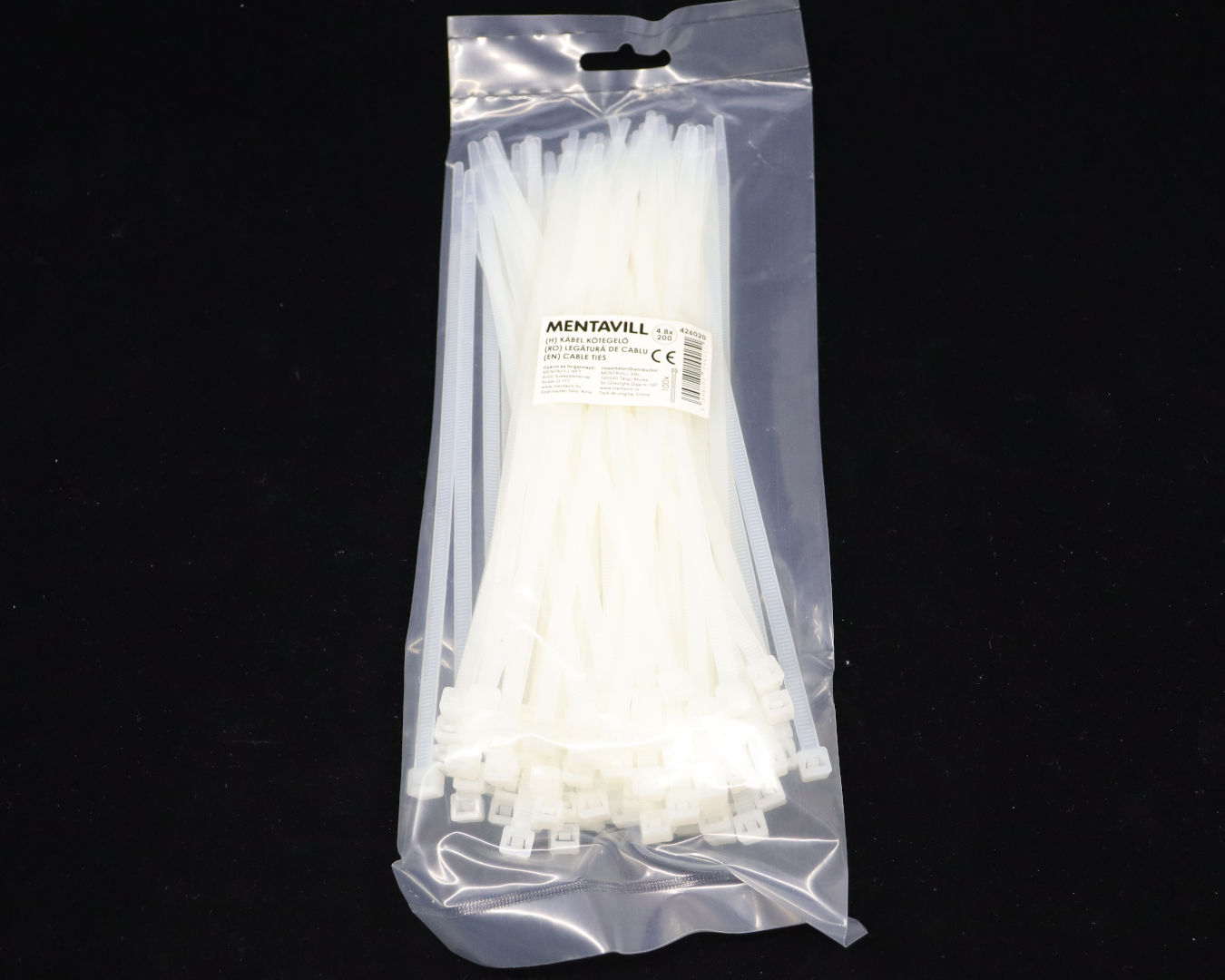 Kábelkötegelő, 200x4.8mm, natur, 100db, PVC, egyszer zárható