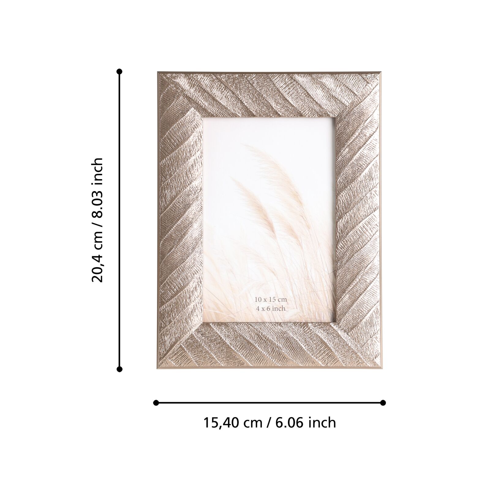 BILDERRAHMEN 10X15CM BRONZE EGONDI EGONDI képkeret H: 204 mm Általános Információk Termék: 423236 Keret anyaga: műanyag Keret színe: bronze Keret elöl: Üveg keret hátsó: MDF Jellemzők: Képformátum 10x15 cm, suitable for horizontal and vertical set up Méretek Hossz: 154 Szélesség: 15 Magasság: 204 Nettó tömeg: 0,231 További információ EAN kód: 9008606372058