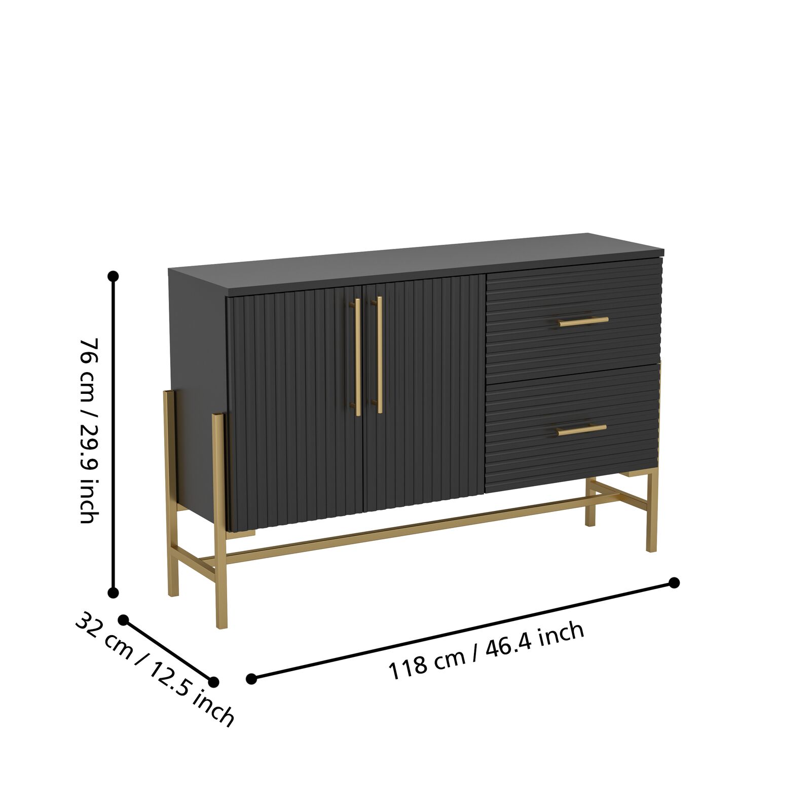 Komód 118x32x76cm fek/arany@