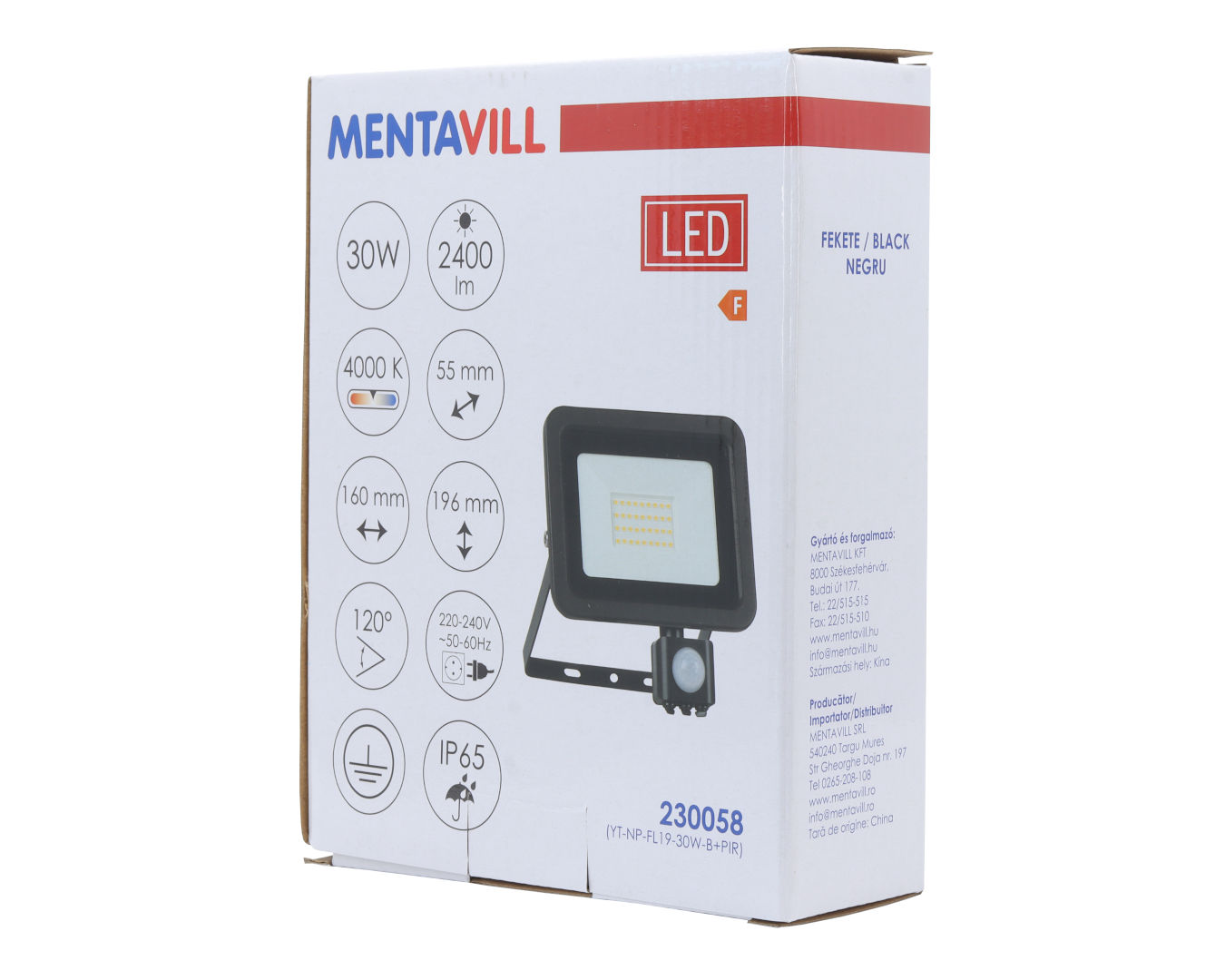 led fényvető/reflektor mozgásérzékelővel 30w 4000k 2200lm fekete, lapos kivitel