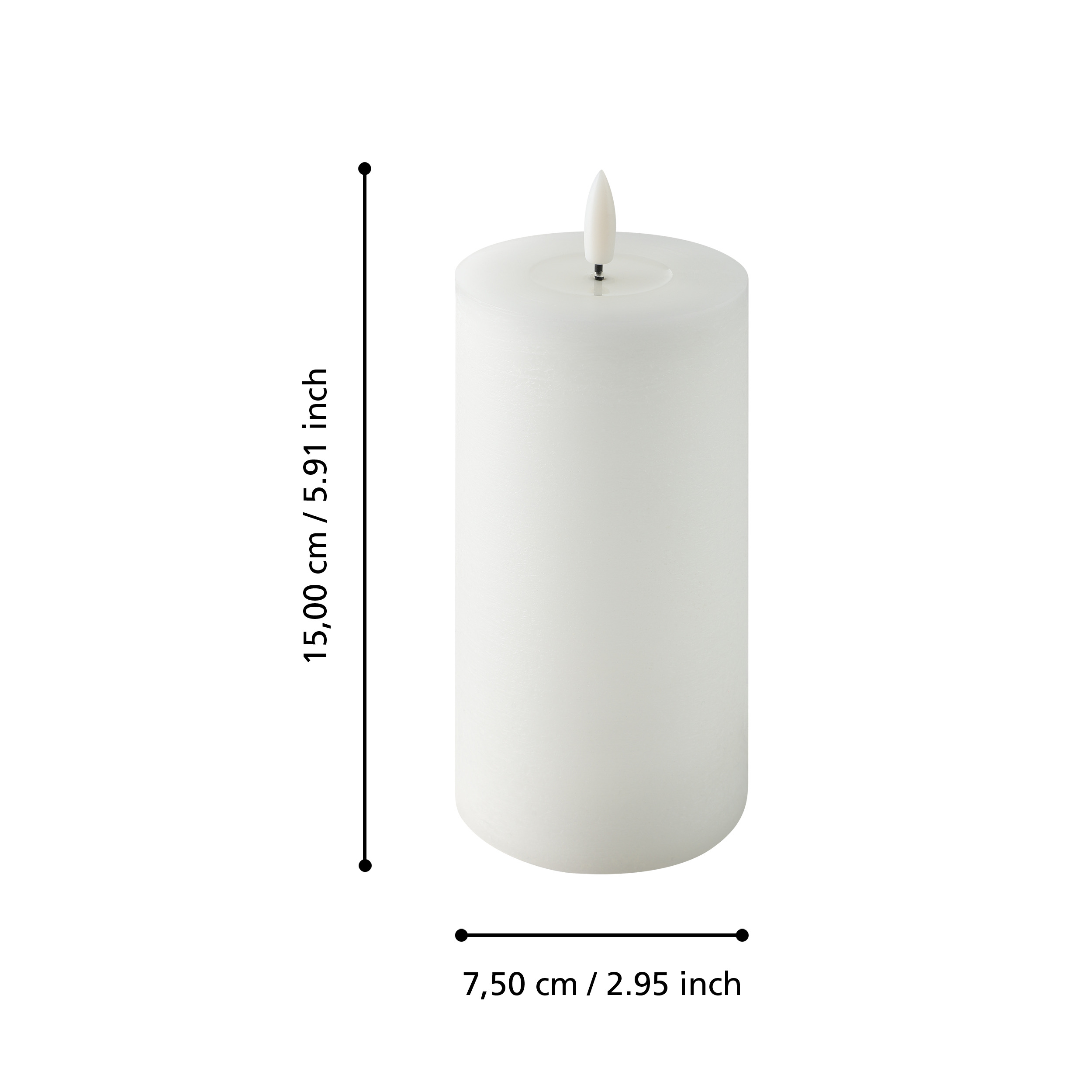 LED gyertya O7,5x15cm fehér Leskino@