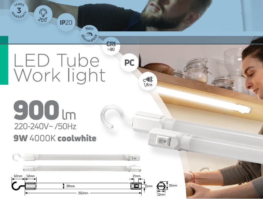 Multifunkciós 2in1 munka/kabinet LED lámpatest 9W 4000K 900lm IP20