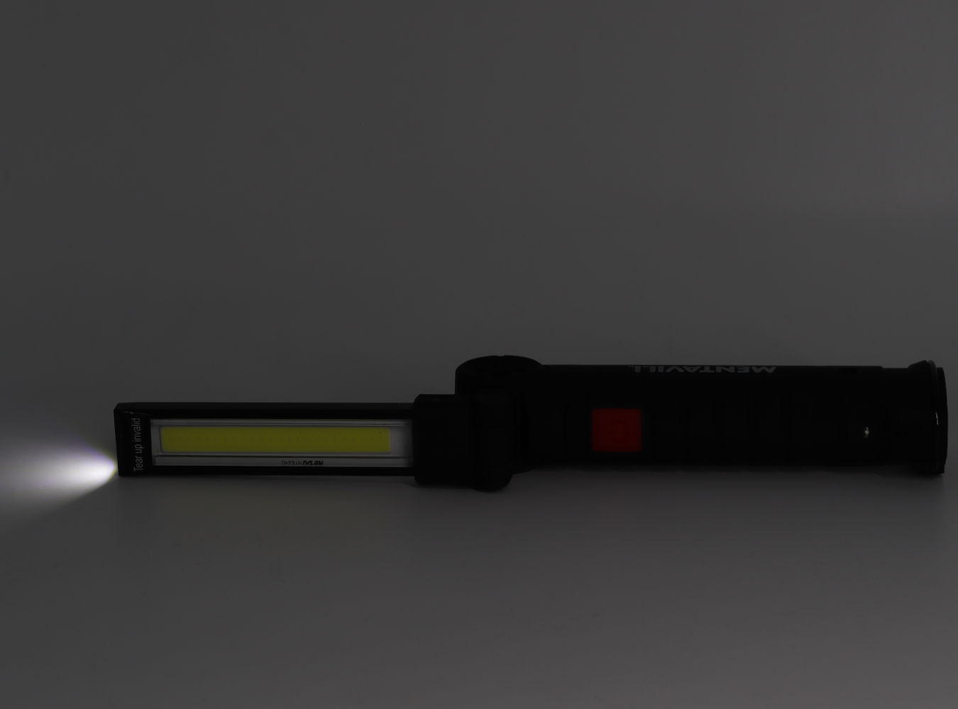A bekapcsológombot hosszan nyomva a termék piros színnel világít. Mentavill LED multifunkcionális munkalámpa – 3W, 200 lm, forgatható fejjel A Mentavill LED multifunkcionális munkalámpa kompakt méretének és praktikus kialakításának köszönhetően ideális választás szerelési, karbantartási és barkácsolási feladatokhoz. A forgatható lámpafej és az erős COB LED precíz megvilágítást biztosít még nehezen hozzáférhető helyeken is. Főbb jellemzők: Teljesítmény: 3 W Fényerő: akár 200 lumen COB LED technológia – egyenletes, széles fénykép 2 fényerőfokozat Forgatható lámpafej – akár 360°-ban állítható Mágneses talp a kényelmes, kéz nélküli használathoz Felakasztható kialakítás Beépített akkumulátor Üzemidő: kb. 8–10 óra MICRO USB töltés, kb. 4 óra töltési idő Kompakt méret: kb. 148 mm Ergonomikus, csúszásmentes markolat