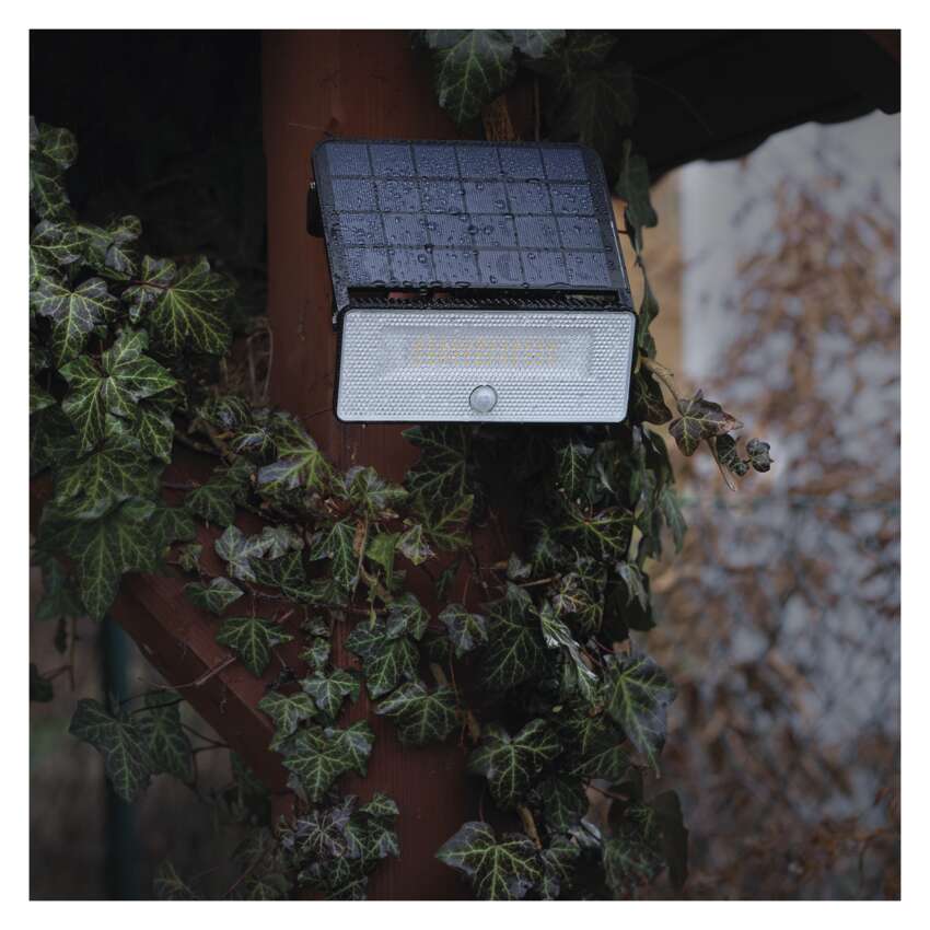 fényforrás: LED, fényáram: 1 600 lm, színhőmérséklet: 4 000 K, fény színe: természetes fehér, színvisszaadási index (CRI): Ra > 80, PIR érzékelő, garancia-időszak: 3 év, kategória: CLASSIC, üzemi hőmérséklet tartomány: #, védettség: IP54, méretek: 190 × 184 × 28 mm, akkumulátor: Li-Ion 3 600 mAh, szín: fekete, lámpatest: műanyag (ABS+PC), a diffúzor anyaga: műanyag (PC), értékesítési csomagolás: 1 db, doboz, táplálás: solar, használat: felszíni szerelés, flicker-free: nem villog