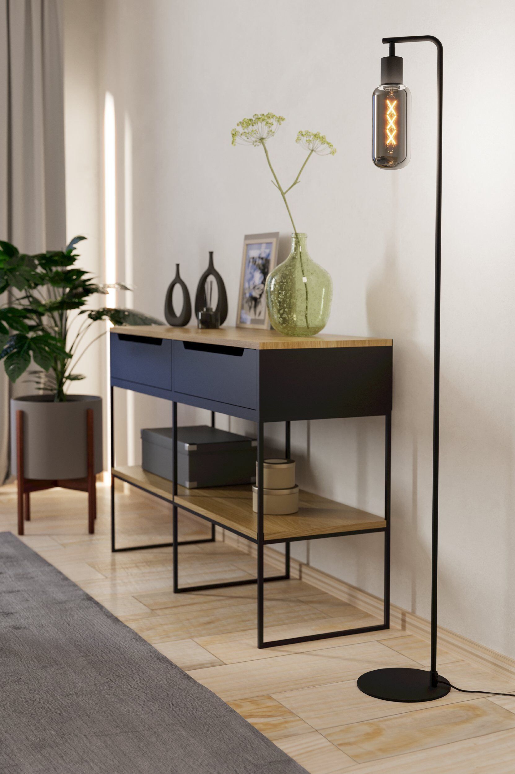 MAIONE Álló E27 4W fekete/fa/szürke/átlátszó
