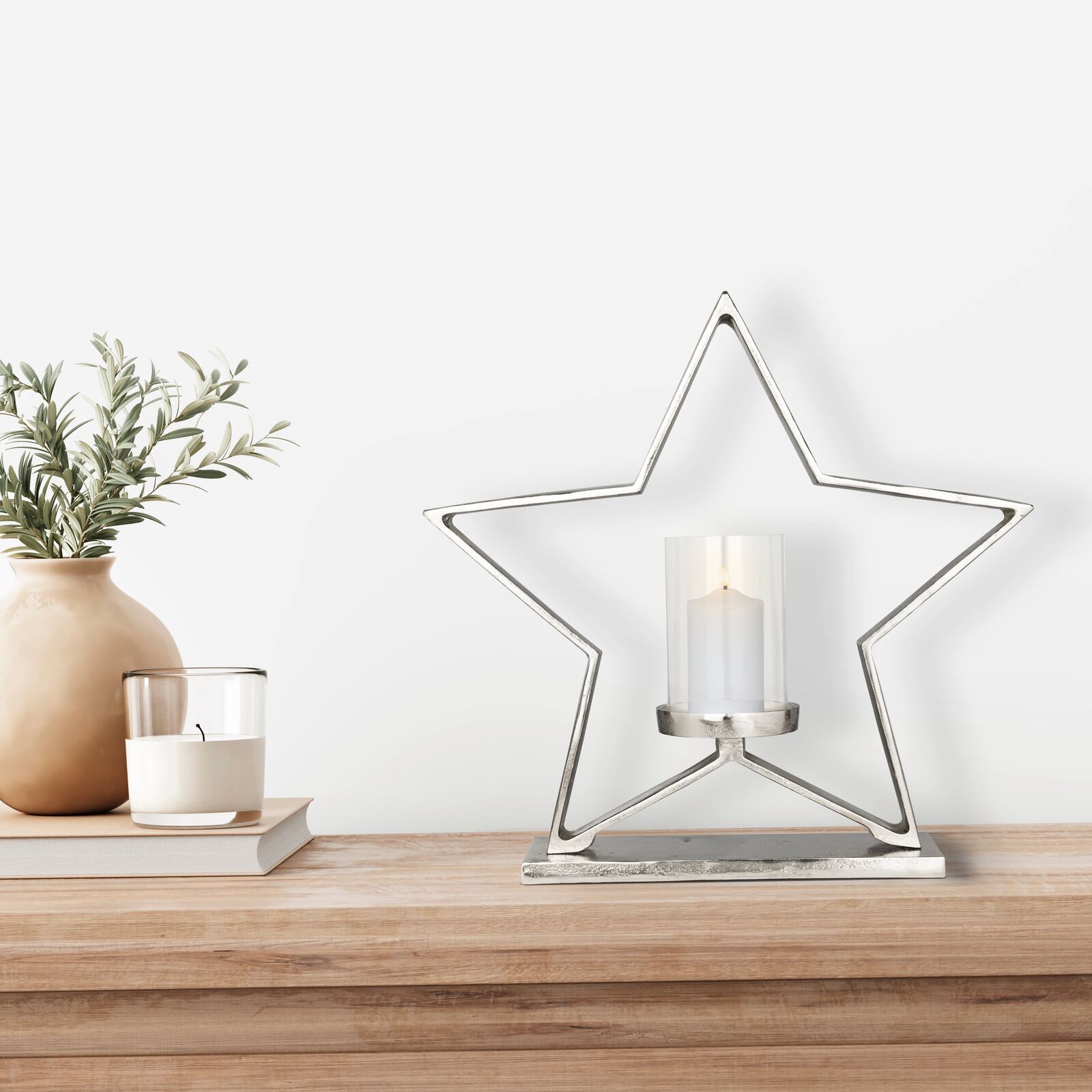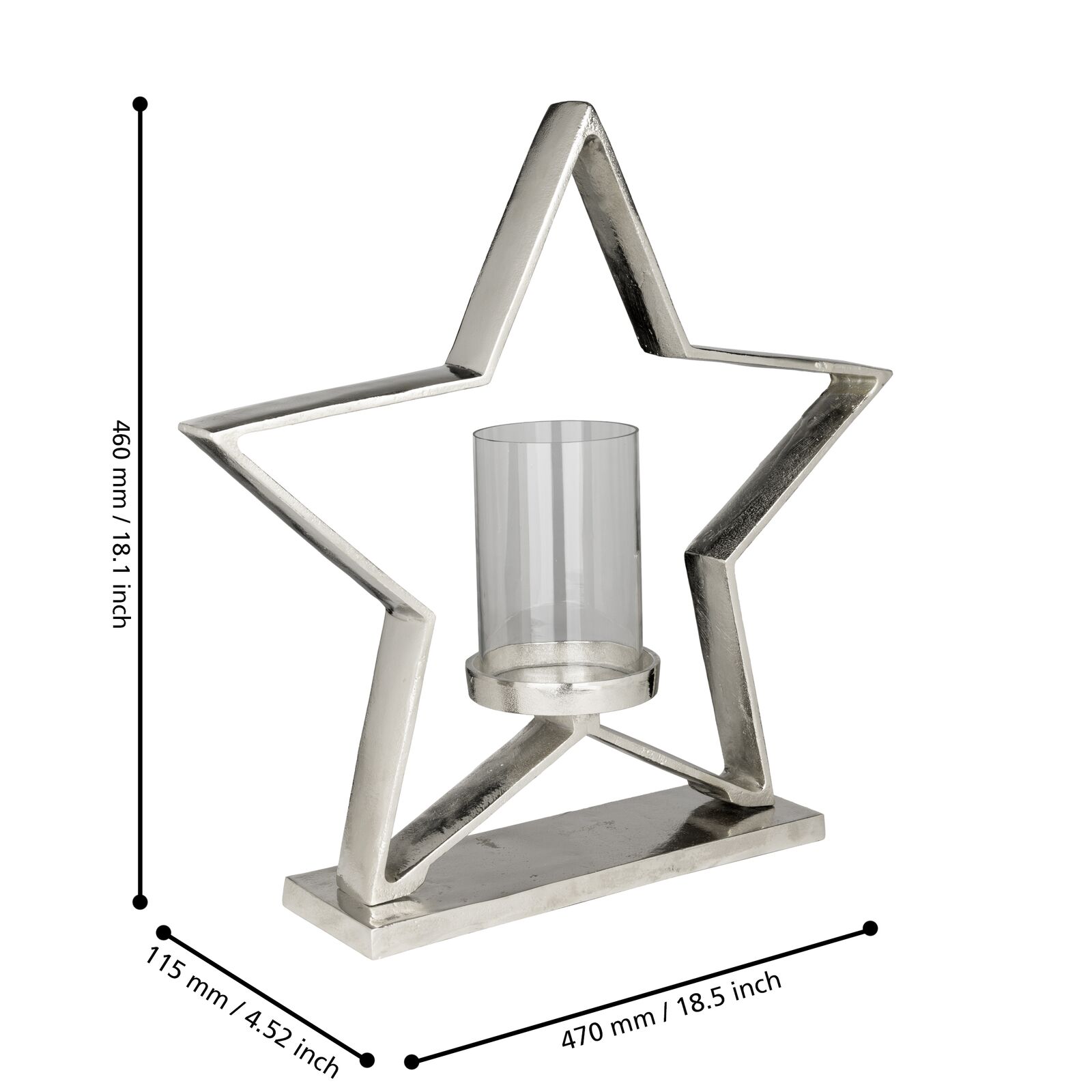 MUKAYLE gyertyatartó H: 460 mm Általános Információk Termék: 422415 Anyag: Alumínium, üveg Szín: chrome, transparent Méretek Hossz: 470 Szélesség: 115 Magasság: 460 Nettó tömeg: 2,9 További információ EAN kód: 9008606287154