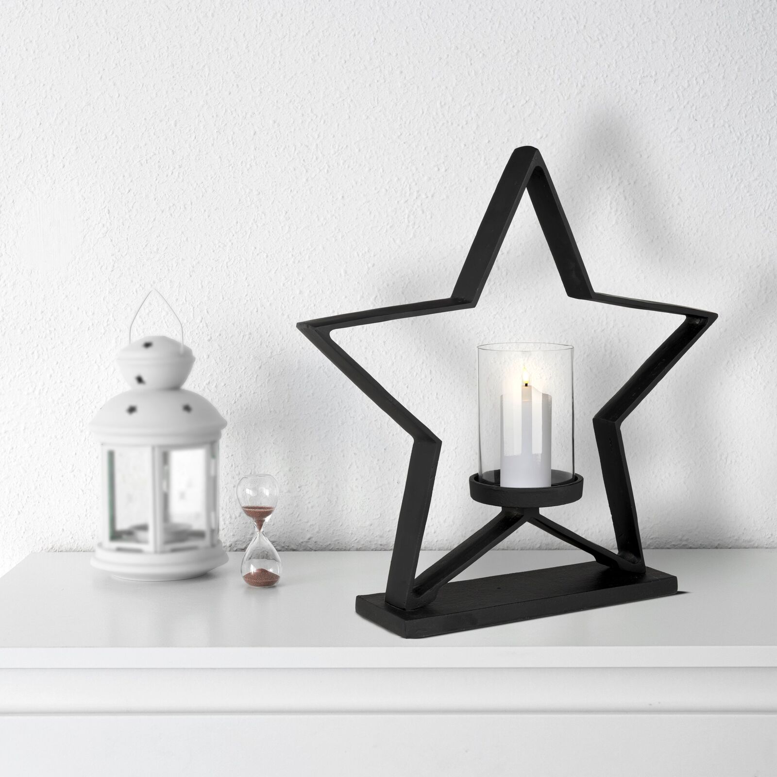 MUKAYLE gyertyatartó H: 460 mm Általános Információk Termék: 422416 Anyag: Alumínium, üveg Szín: black-transparent Méretek Hossz: 470 Szélesség: 115 Magasság: 460 Nettó tömeg: 2,9 További információ EAN kód: 9008606287161
