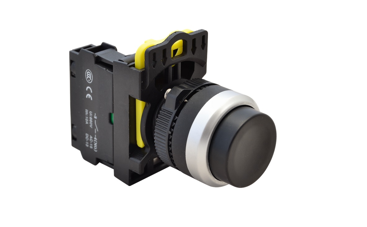 nyomókapcsoló kiálló fekete 1×no, 5a/230v ac-15, ip42