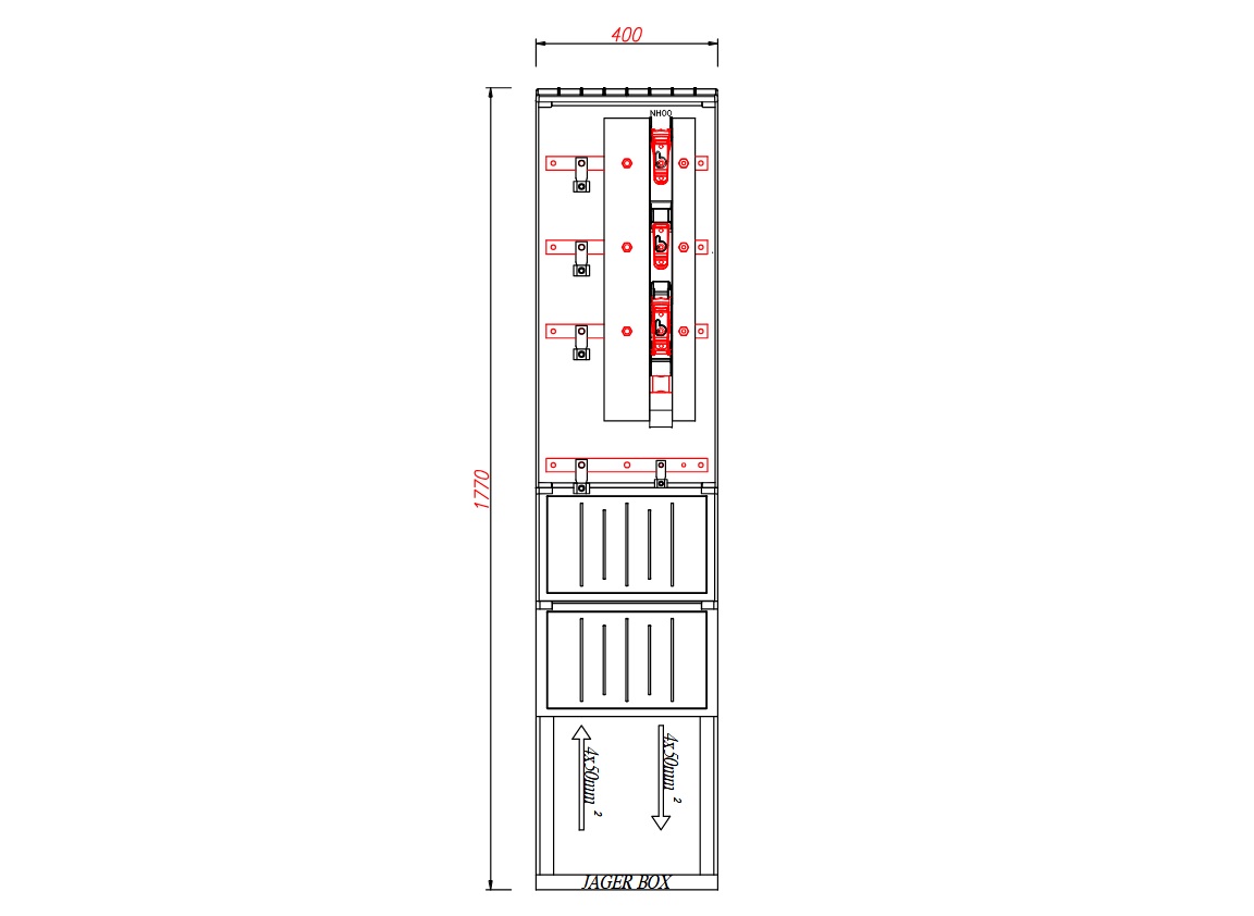 pvt-k-l 40 fe szekrény rajz szerint 400x770x50mm 30x10 sín