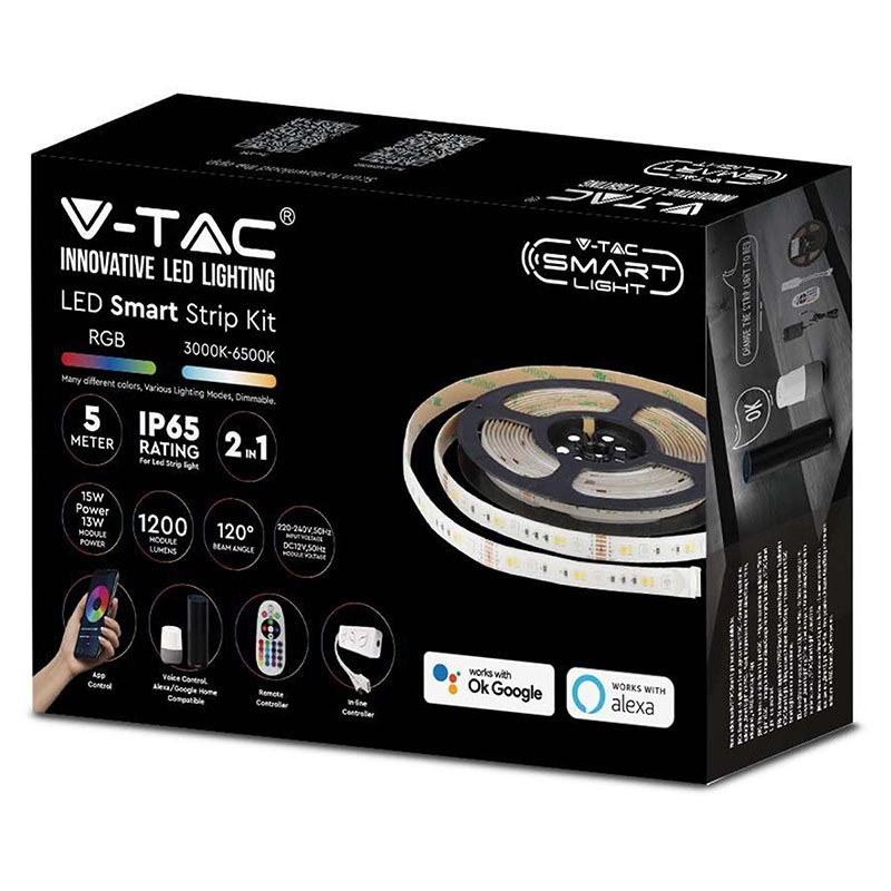 A komplett LED szett minden szükséges alkatrészt tartalmaz a világítás kialakításához, ráadásul rövid idő alatt, szakértelem nélkül is összeállítható! Az 5 méteres színváltós, IP65 védettséggel ellátott LED szalagon kívül a LED vezérlő a távirányító és a LED tápegység is megtalálható a szettben. A WiFi vezérlővel könnyedén szabályozhatjuk LED szalagos világításunkat, a V-TAC Smart Life applikáció (Android és Apple iOS) telepítése után mobiltelefonnal is vezérelhető - távolról is!