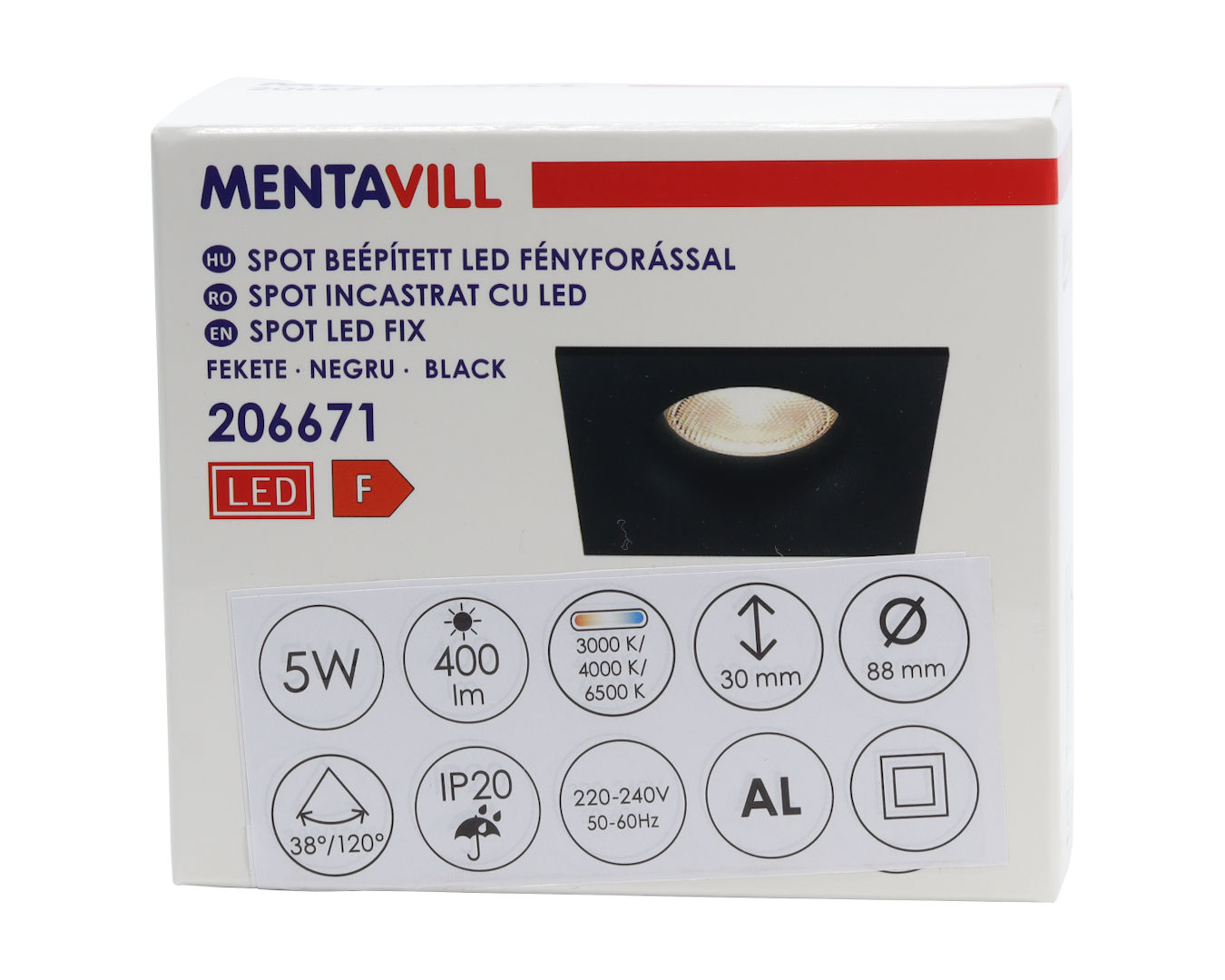 spot led 5w fix szögletes fekete beépíthető