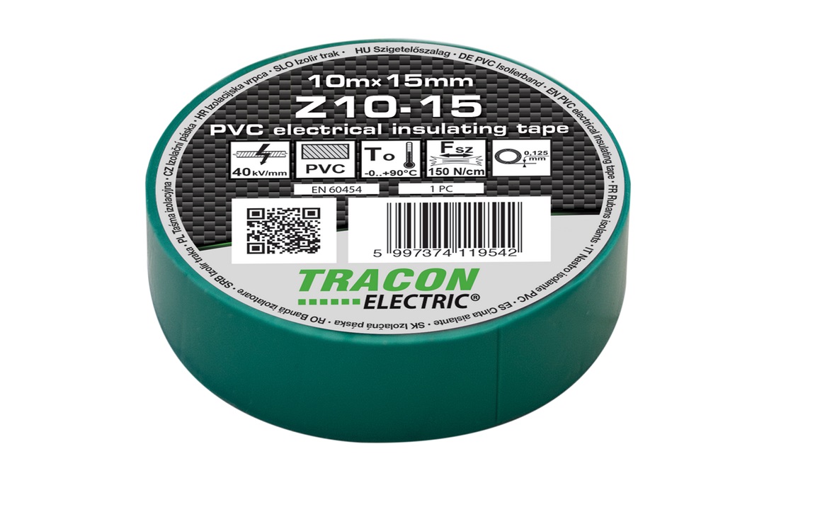 Szigetelőszalag, zöld Cikkszám:Z10-15 (EAN: 5997374119542) Műszaki adatok 10m×15mm, PVC, 0-90°C, 40kV/mm Termékleírás Hosszúság: 10 m Szigetelő: Igen Hőállóság: 0 -90 °C