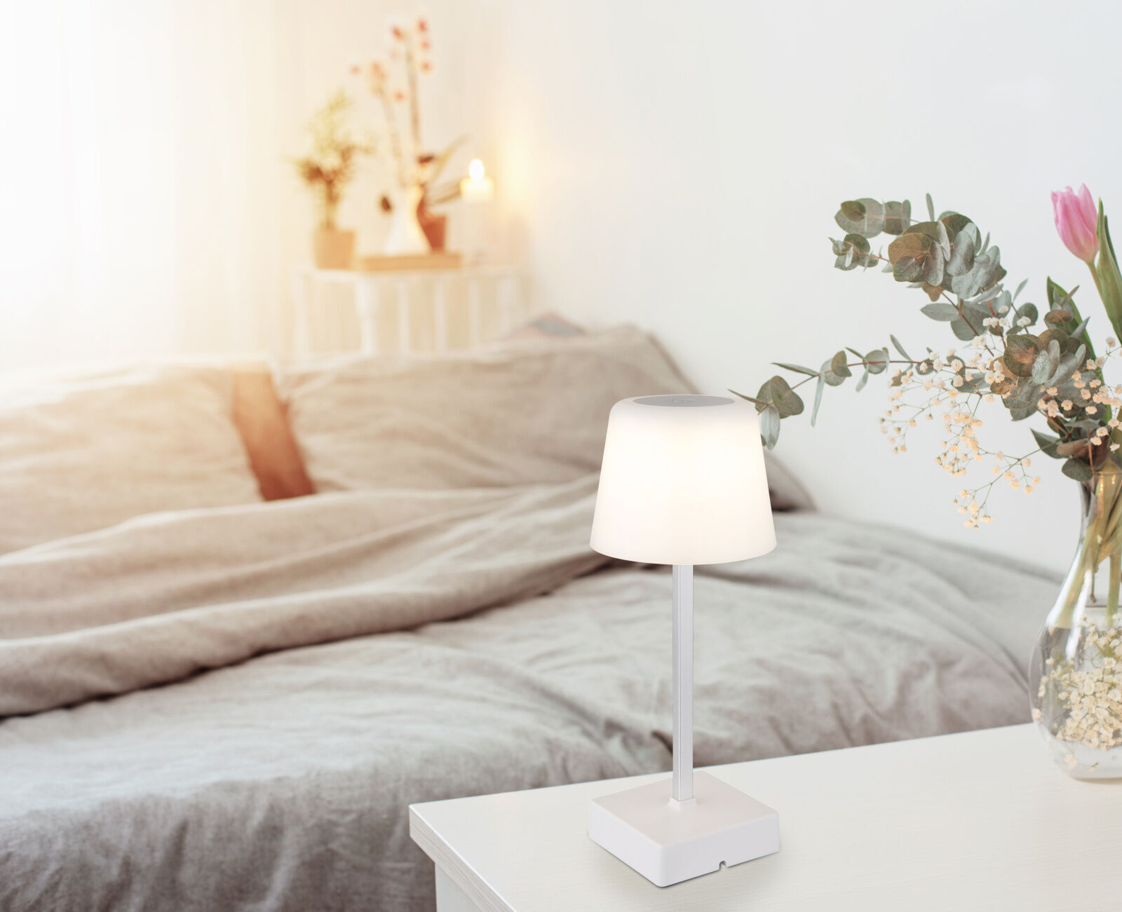 A GLOBO 28061W XAYDEN asztali lámpa modern kialakítással rendelkezik. Fehér műanyagból készült ernyő alakú búrája és elegáns fehér színű, matt műanyagból és alumíniumból készült teste stílusos színfoltja minden helyiségnek. A fokozatmentes érintéses dimmernek köszönhetően a fényerő egyedileg állítható, a színhőmérséklet pedig 3000 K és 6000 K között változtatható a kívánt világítási hangulat megteremtése érdekében. Ezenkívül a kiválasztott szín rögzíthető is. A lámpa praktikus érintéses be/ki funkcióval rendelkezik, és USB töltőkábelt is mellékelünk hozzá, így vezeték nélkül is használható. Körülbelül 4 órás töltési idővel a XAYDEN akár 6 órás világítási időt kínál. A 85 mm átmérőjével bárhol ügyesen elhelyezhető. A fénykibocsátása 106 lumen, amely kellemes és diszkrét megvilágítást biztosít. Ideális éjjeli lámpaként vagy dekoratív kiegészítő világításként való használatra, miközben ötvözi a funkcionalitást az időtlen stílussal. A lámpa anyaga: műanyag A lámpa anyagának színe: matt fehér Foglalat típus: Beépített LED modul IP védettség: IP20 Család: HAYDEN Búra anyaga: műanyag A búra anyagának színe: fehér Energiaosztály: G A fény színe meleg/neutrális/hideg Teljesítményfelvétel (W): 2,00 Fényerősség-fényforrás/kimenet(lm): 120/100