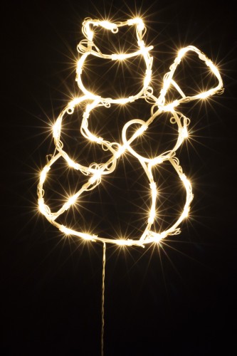 A dísz központi eleme egy mosolygós hóember forma, amelyet 35 darab melegfehér LED világít meg, kellemes és barátságos fényhangulatot teremtve. A fehér vezeték diszkréten simul a környezetébe, így a fények játsszák a főszerepet – nem a kábelek. A dísz kültéri és beltéri használatra egyaránt alkalmas, így nemcsak az otthon belső tereiben, hanem ablakra vagy teraszajtóra is tökéletesen elhelyezhető.