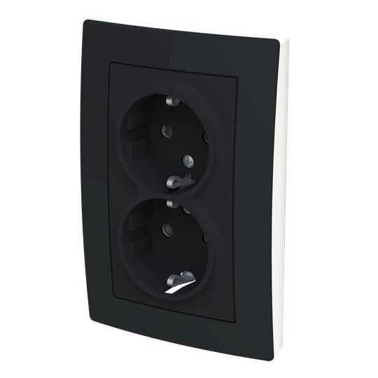 Dupla dugalj SCHUKO/földelt gyermekvédett,Zoni, fekete matt / fehér
